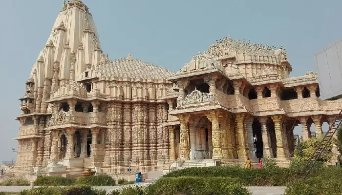 معبد سومنات (Somnath Temple) در گجرات، یکی از معابد معروف هند است. این معبد که در کنار خط ساحلی قرار دارد، در طول تاریخ بارها توسط مهاجمان تخریب و هر بار توسط پادشاهان هندو بازسازی شده است. آخرین بازسازی آن پس از استقلال هند به دستور والابای پاتل انجام شد و به نمادی از استقامت و هویت فرهنگی تبدیل گشت.